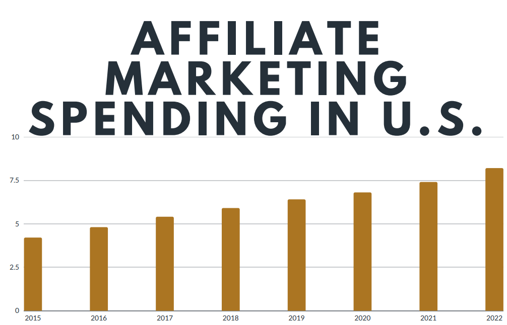 Being an affiliate marketer is more or less being a sales person. You earn a commission for marketing another person’s or company’s products and earns a piece of the pie. Average is 10%, but it fluctuates dependent on the type of product. Just in U.S. alone, companies spend billions as depicted in the chart below (the chart data was pulled from statista)