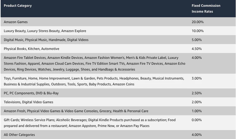 Amazon has different commission rates as shown in below table. The rates get updated frequently, so I recommend checking it on their website.