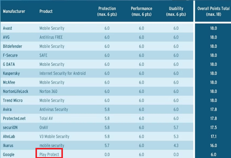 This wasn’t pinduoduo’s first rodeo either. Their earlier versions have installed backdoors and gained unauthorized access to user data and notifications. To prevent this, it’s best to be aware of what you are installing and have anti-malware to prevent malware from installing. Many people think Google’s play protect is safe enough, but truthfully, it isn’t. Google’s play protect is basically built-in malware protection for Android, it’s like microsoft defender for windows. Google play protect scans apps to ensure one doesn’t install harmful apps. However, google play protect has been proven to be not that safe per AV-TEST report. AV-TEST is an independent organization which evaluates and rates antivirus and security suite software. As you can see, it falls at the bottom of the list. I personally recommend going with either Bitfender or norton. If you want to get more details and read about the best antivirus for androids, go here.