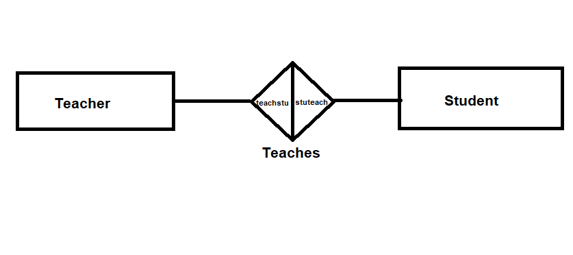 The rhombus is simple a bi-directional arrows pointing to each entity types in the above image. Teacher teaches student and student is taught by the teacher. Individual entity relationship instances are not represented in the ER model, it’s types to types.